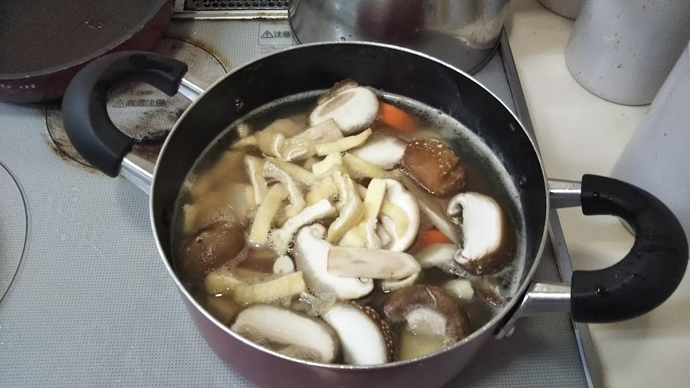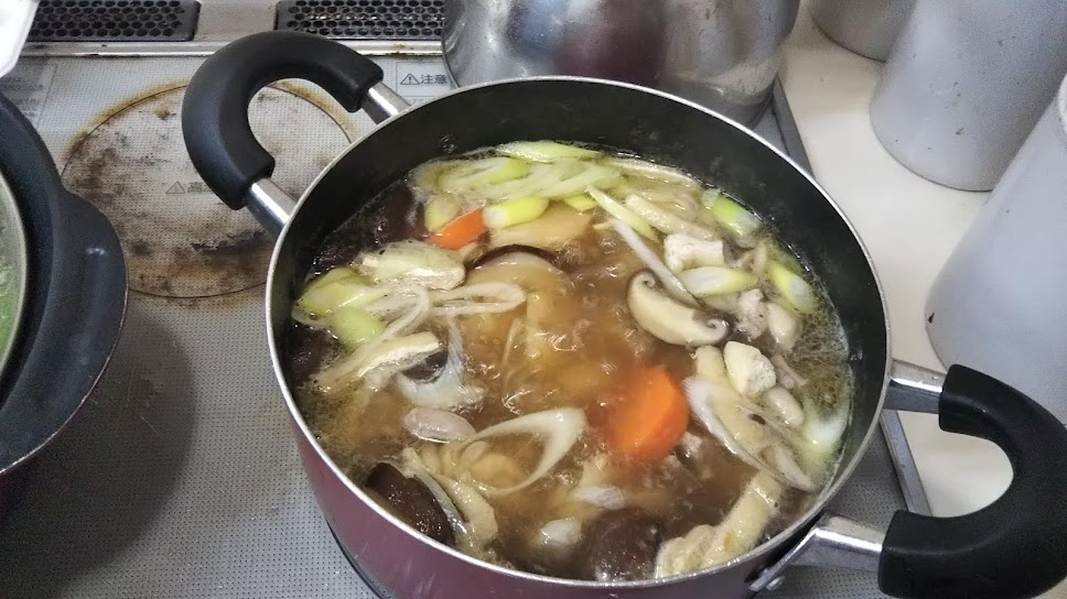 これもレシピに載せる必要もないような一品です。あえて特徴をあげるなら、我が家のけんちん汁は具が大きいってことでしょうか。寒い冬は鶏肉と里芋のけんちん汁が温まりますね。