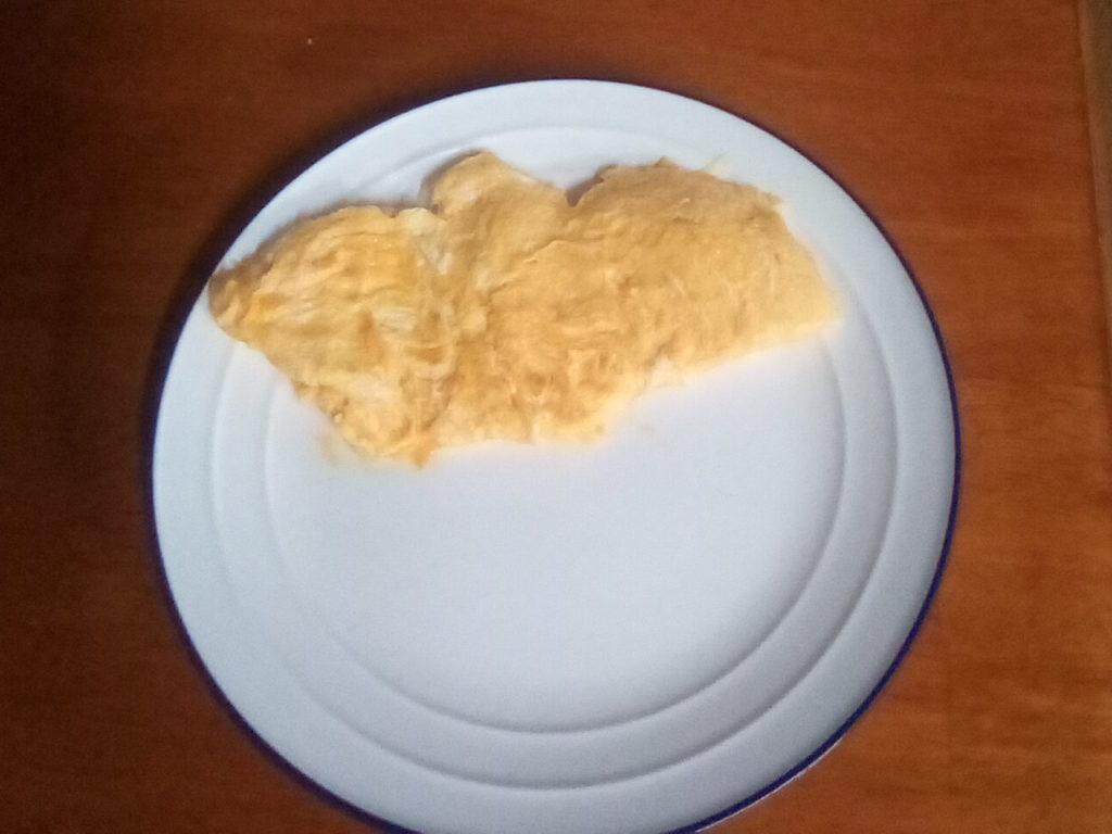 三舟シェフのレシピはオリーブやレモンの塩漬けを使ったり、逆に牛乳もクリームも入れないで卵をトロトロにしあげるとういう手の込んだものです。私にはとても出来ませんので、普通に牛乳をいれたオムレツに合わせました。原作はこのあと鱈とアサリを野菜で煮込んだ料理をメインいしていますが、ドラマでは前菜にガルビュールというスープを出して、こちらがメインになっていました。鱈とアサリの料理はいずれ作ってみたいと思います。ガルビュールはこのあとの記事に書きます。