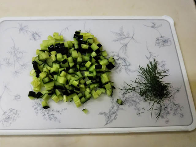 1. 胡瓜は5㎜程度の角切り、ディルは細かく刻む