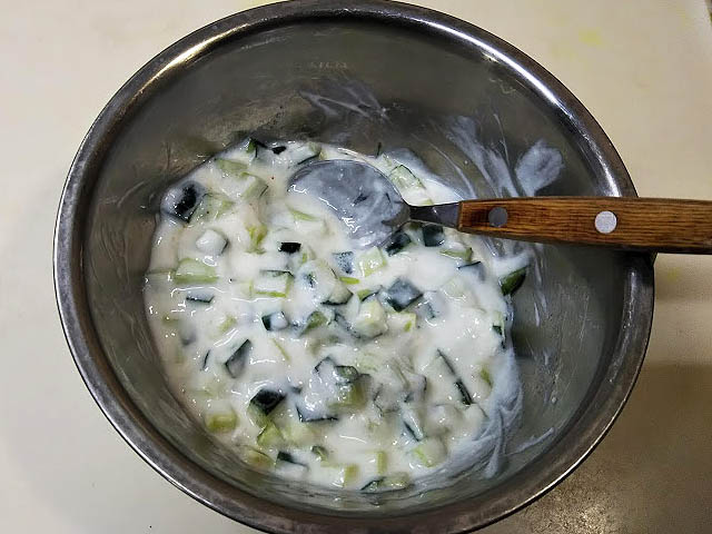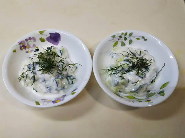 インドカレーのお供でもあるヨーグルトと胡瓜のサラダです。ギリシャのジャジキにも似ていますが、こちらのほうが万人受けする味だと思います。