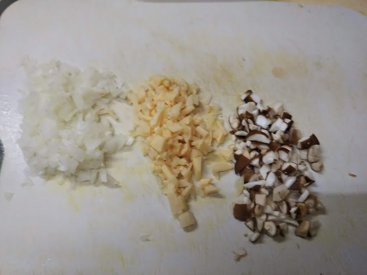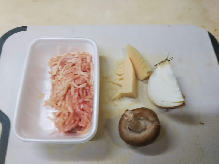 1. 玉葱、椎茸、筍はそれぞれ微塵切りにする