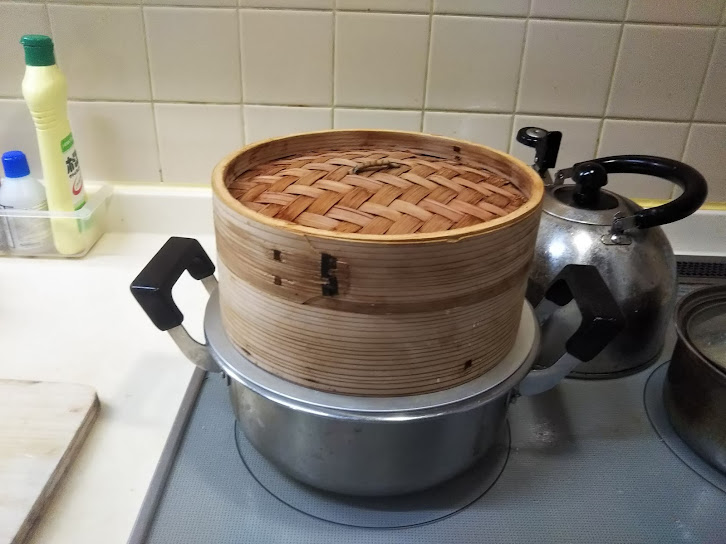 5. 鍋に湯を沸かし、沸騰したら蒸篭をセットして蒸す