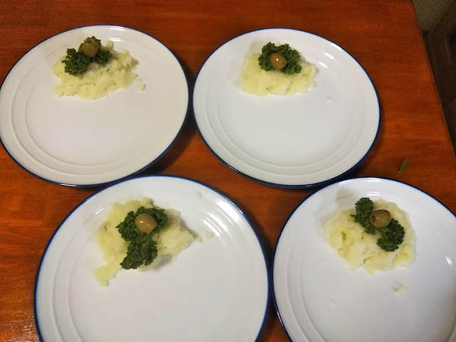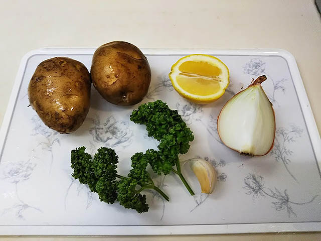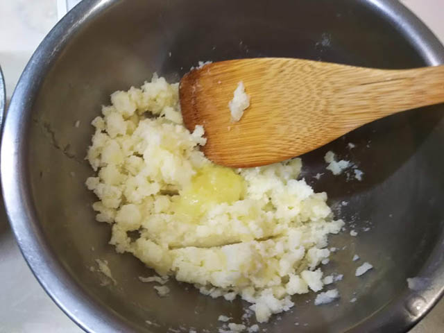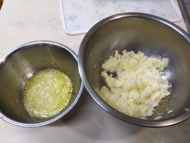 ギリシャのマッシュポテトです。バカリャロスの付け合わせの定番です。付け合わせとして4人分で計量しています。