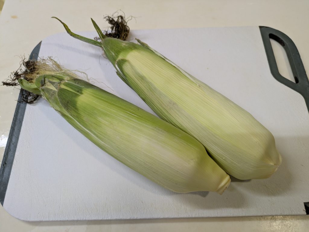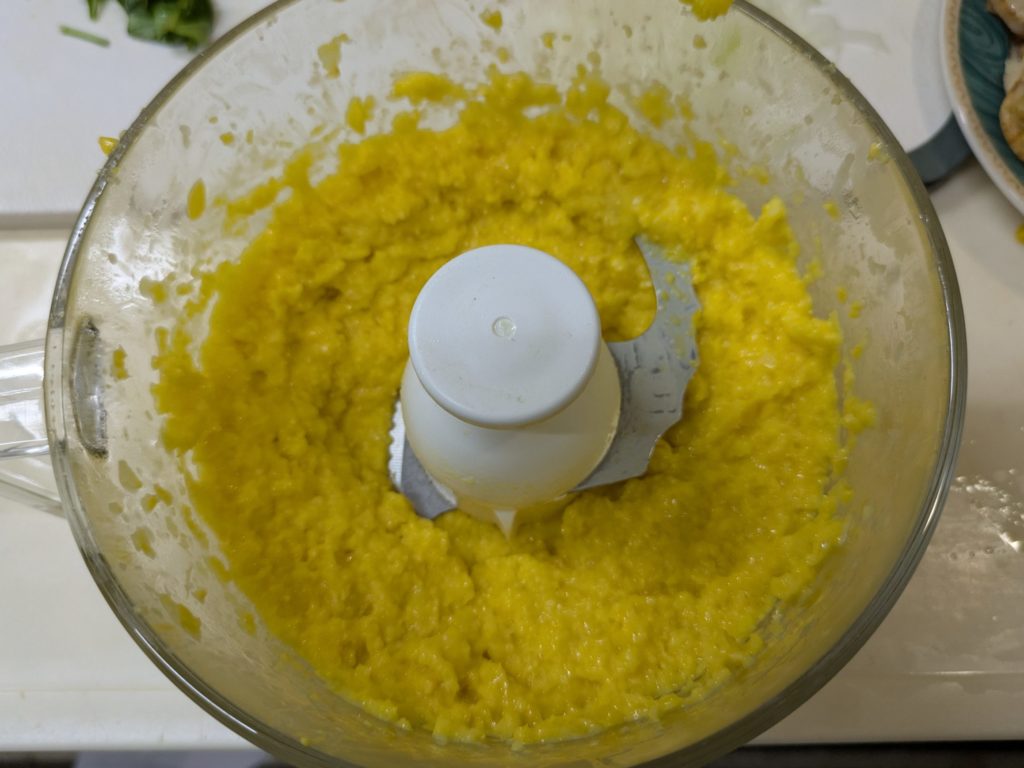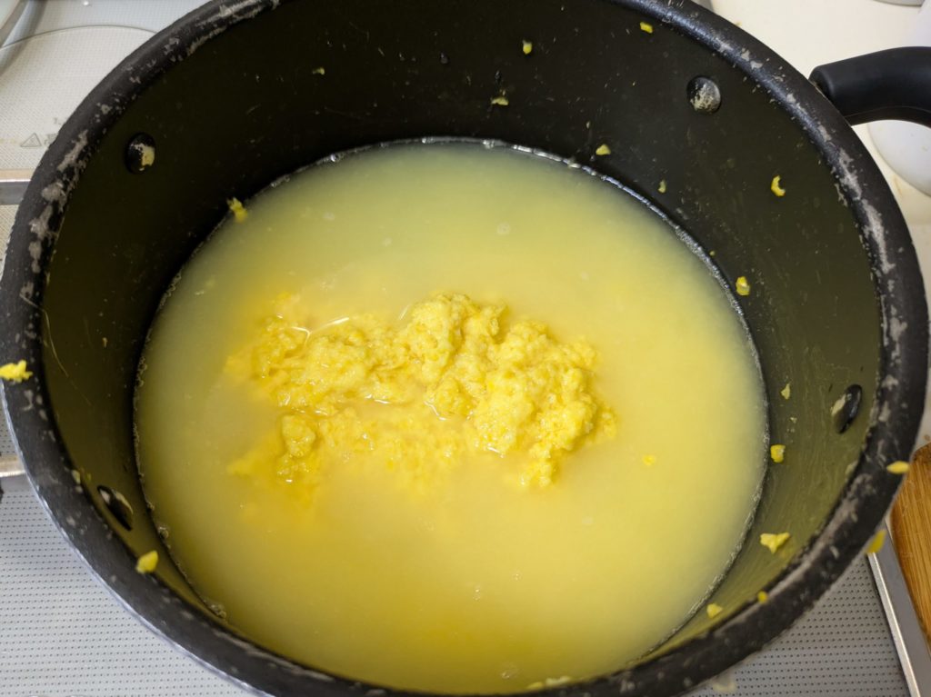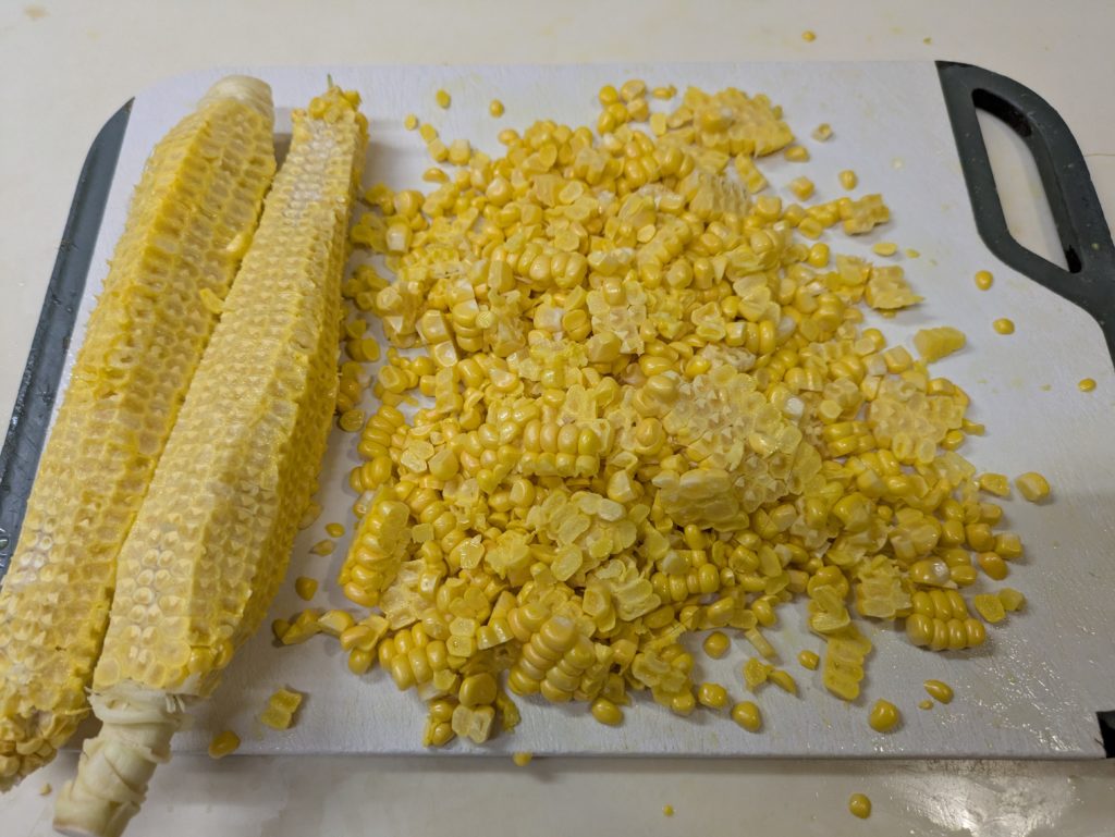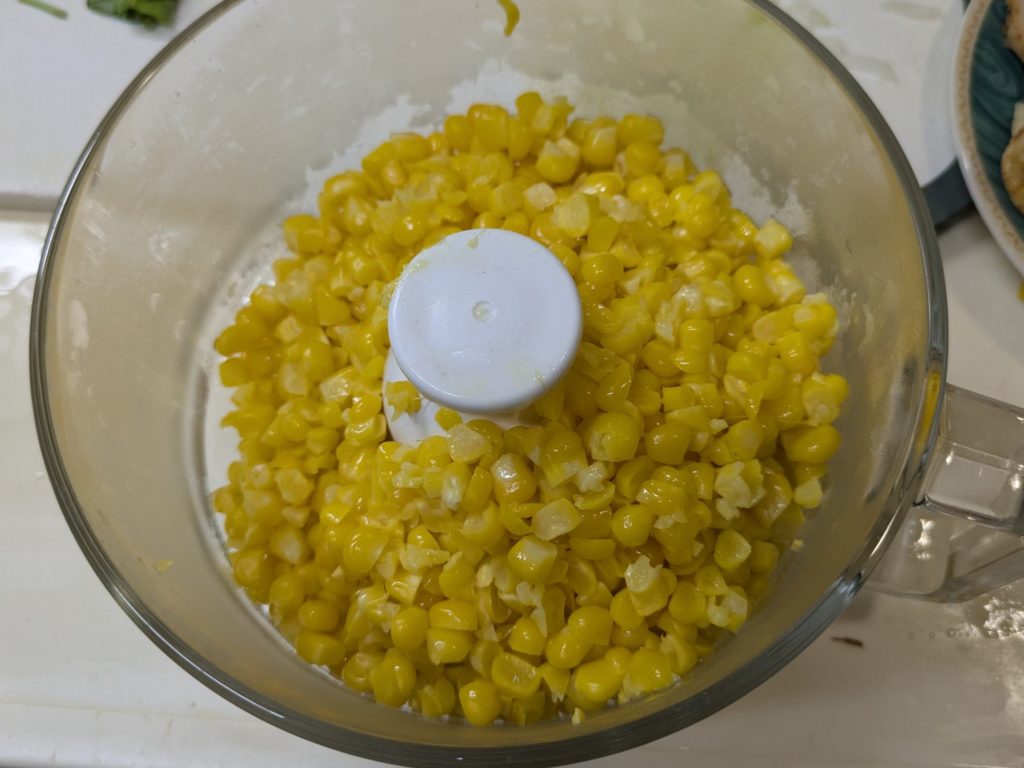 いわゆるコーンスープとかコーンポタージュといわれるものですが、ブイヨンやコンソメスープの素を加えず、牛乳も生クリームも加えない水と塩だけを加えたスープ、これはかなり感激ものです。リモートシェフで紹介されていたとうもろこしのスープ、私は現在ハンディーブレンダーが壊れてしまったので、フードプロセッサーを使いましたが、ブレンダーをお持ちの方はそちらを使うほうをお勧めします。手間がかからないし、洗い物も少なく済みますから。