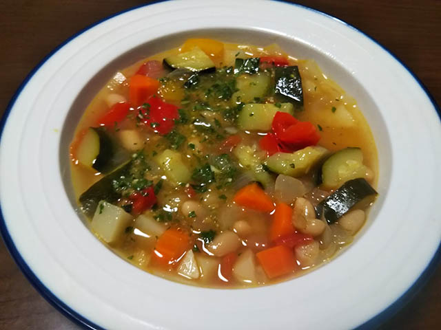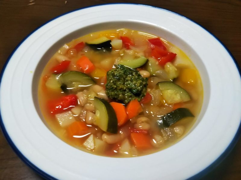 南フランスの野菜たくさんのスープです。過去にズッキーニがなくて茄子のスープ・オ・ピストゥやビストロ・パ・マルのスープ・オ・ピストゥをアップしていますが、我が家で作る最もオーソドックスなスープ・オ・ピストゥです。根菜に夏野菜、それに豆が入ったこれだけで他におかずがいらないようなスープです。