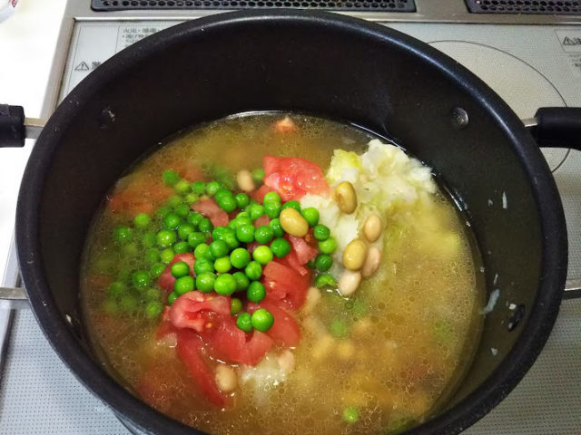 ビストロ・パ・マルのレシピからスープ・オ・ピストゥを作ってみました。スープ・オ・ピストゥは夏野菜と白隠元豆が基本だと思っていましたが、三舟シェフ…というか小川奈々さんのレシピでは白隠元豆ではなく赤隠元豆を使い、ズッキーニとポテトをマッシュするところが新鮮でした。今回もまた豆などちょっとだけ材料を変えて作ってみました。レシピは『ビストロ・パ・マルのレシピ帖』を参考にさせていただきました。
