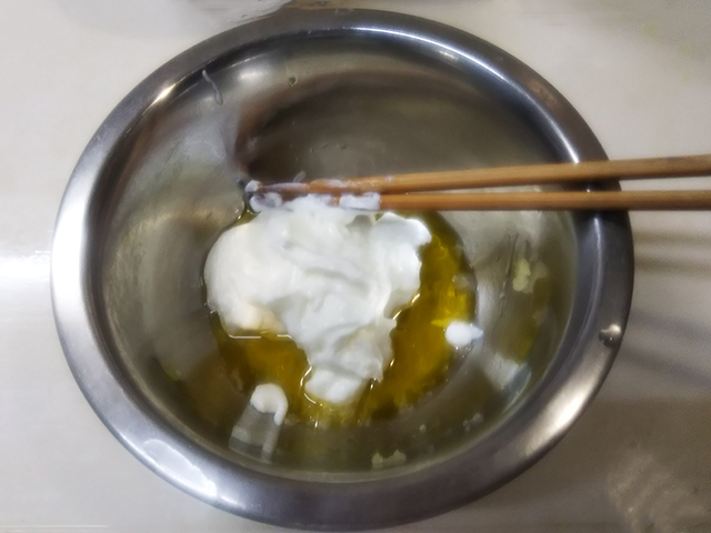 1. ヨーグルトはガーゼやペーパーフィルターなどで水を切っておく