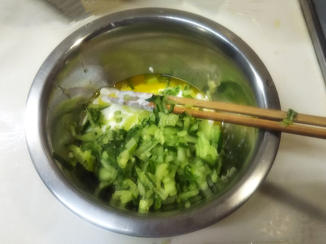 4. 2.の胡瓜の水気をよく絞ってから加えて混ぜ合わせる