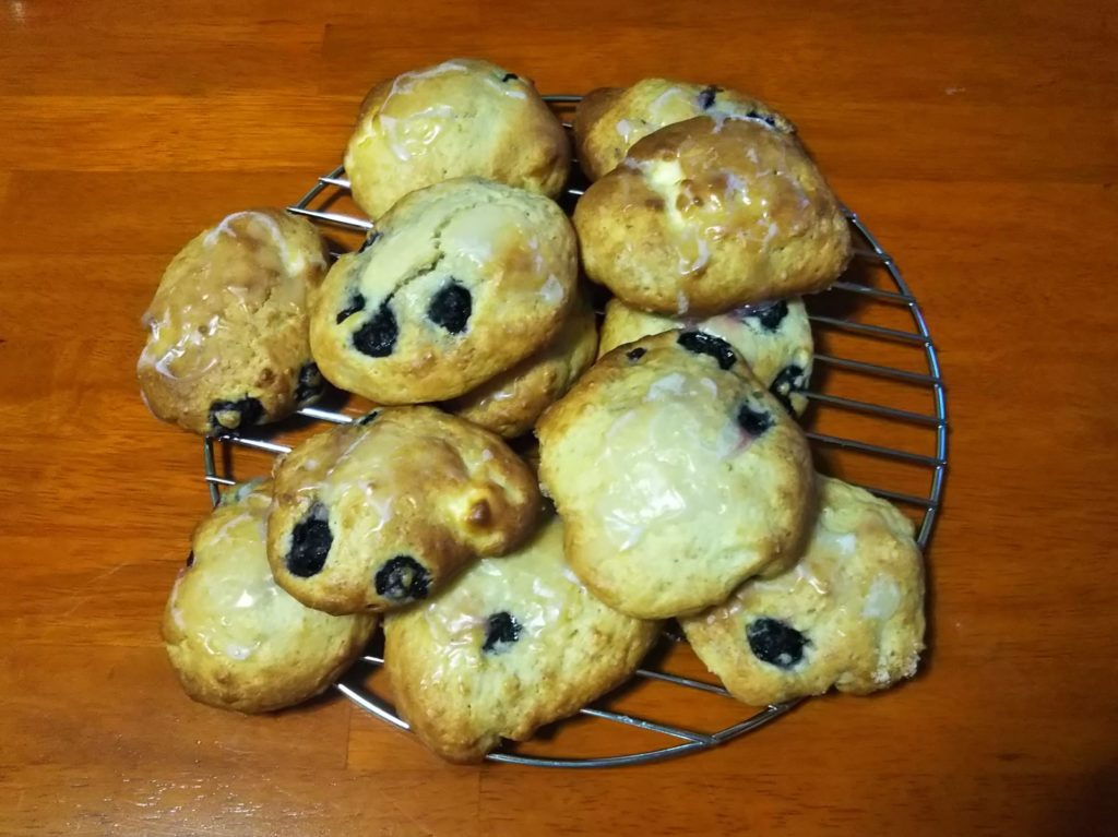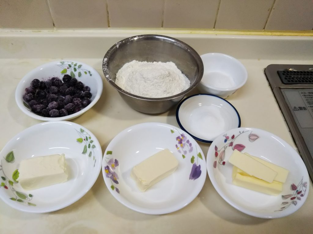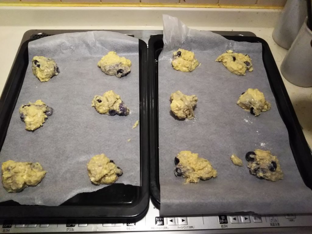 ハワイで食べられているブルーベリーとクリームチーズのスコーンです。参考にしたレシピは12個分、分量はいつも6個作る時とほぼ同じなので、1個あたり普段の半分の量になります。