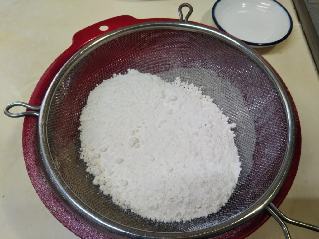 2. 薄力粉、強力粉、ベーキングパウダーは合わせて2~3回篩っておく