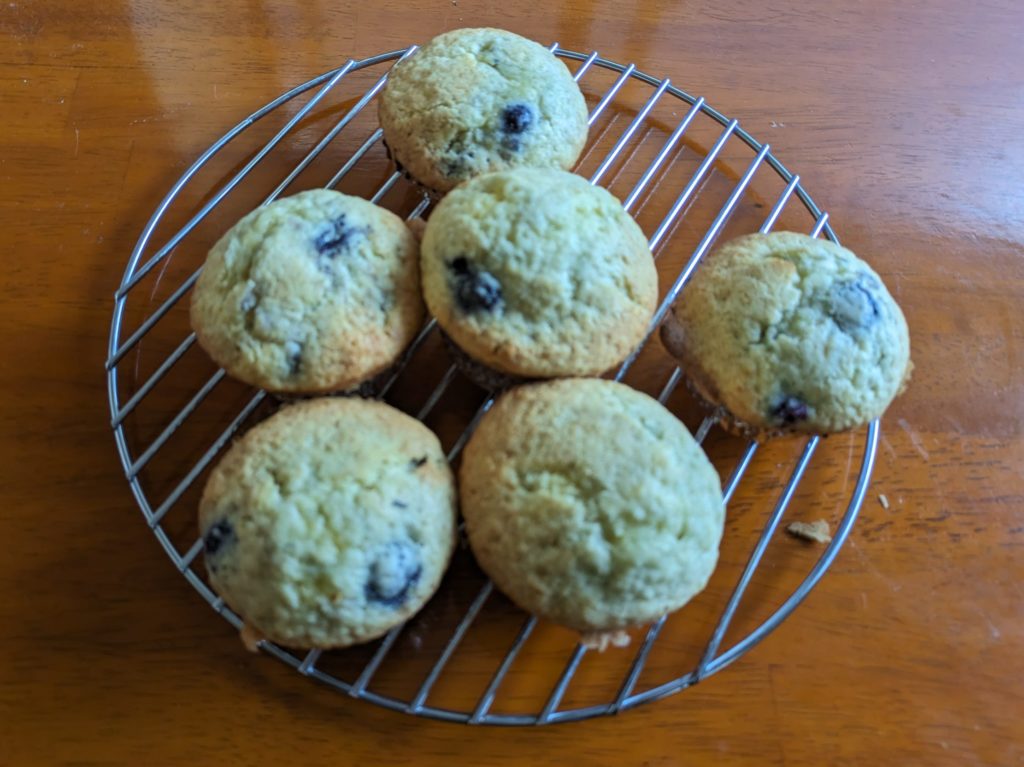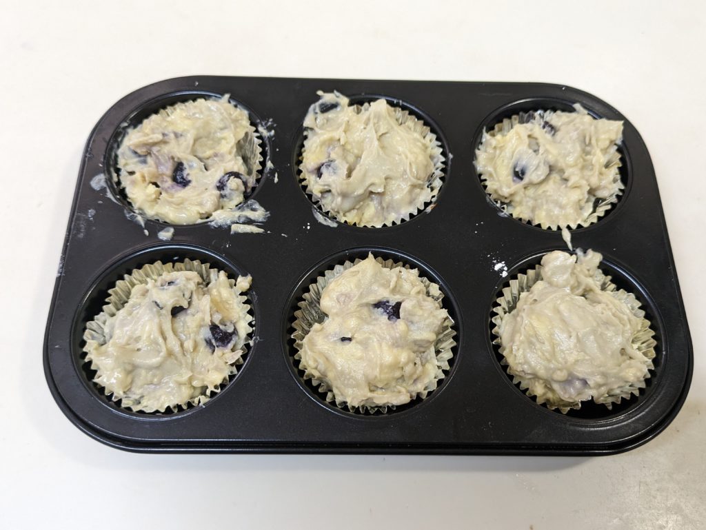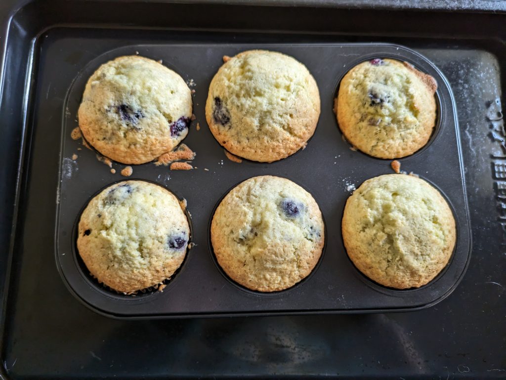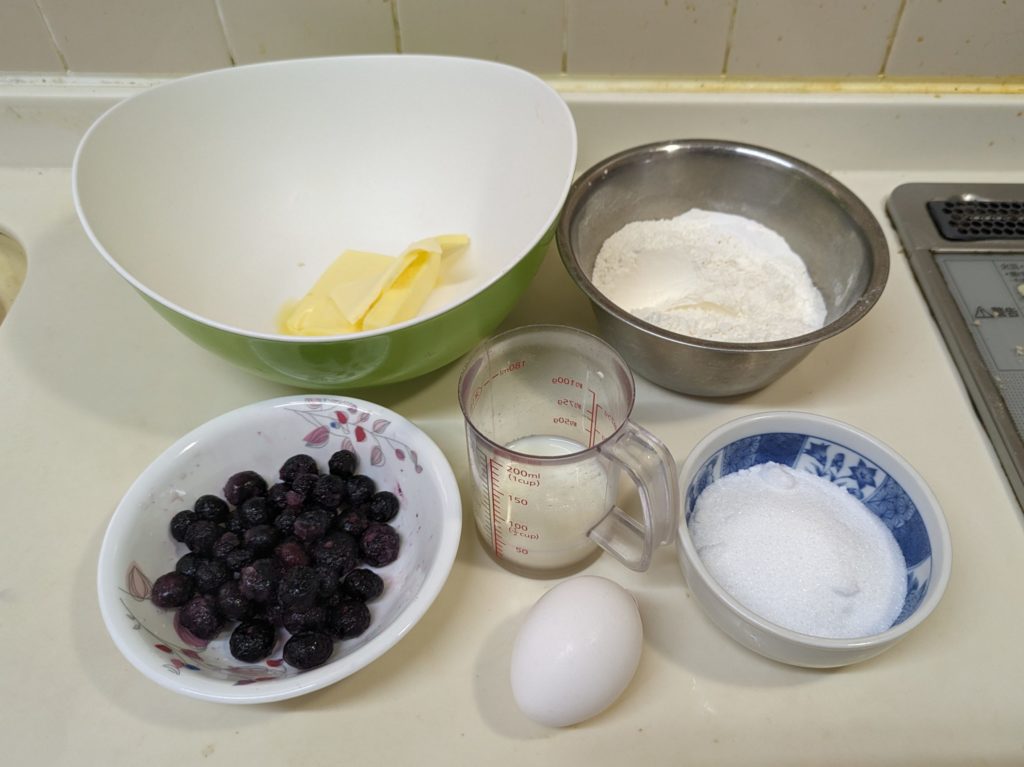 アメリカン・マフィンの定番でもあるブルーベリーマフィンです。今回は冷凍ブルーベリーを100g入れてみましたが、ちょと多かったかな?という感じです。ドライならそれくらいの量でも大丈夫だと思います。