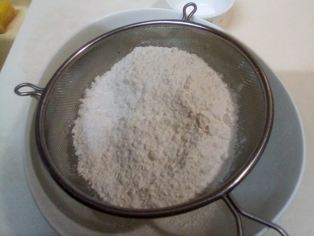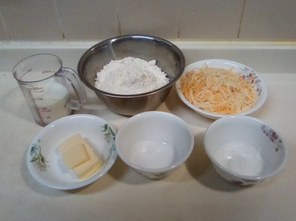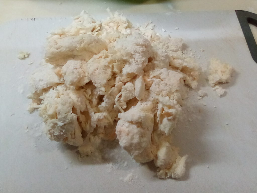 1. バターはサイコロ状に切って冷蔵庫に入れておく。小麦粉とベーキングパウダーは合わせて篩っておく