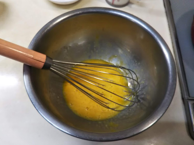 1. ボウルに卵を割りほぐし、砂糖を加えよく混ぜる