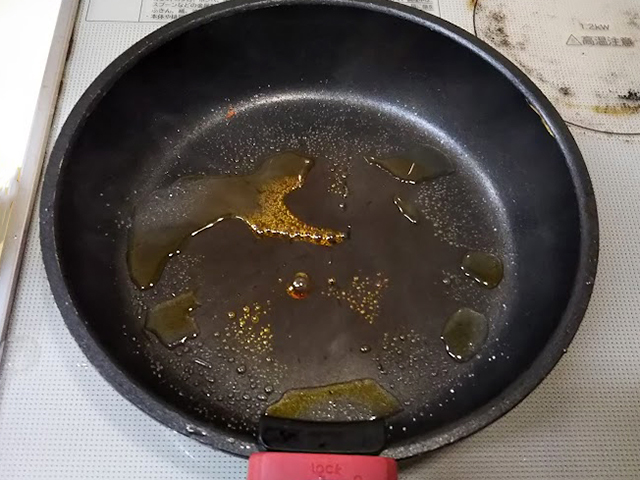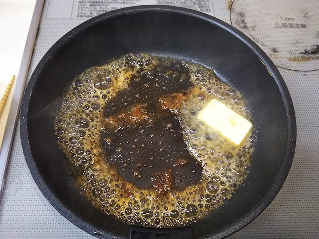 10. 砂糖が飴状になったらバターを加える