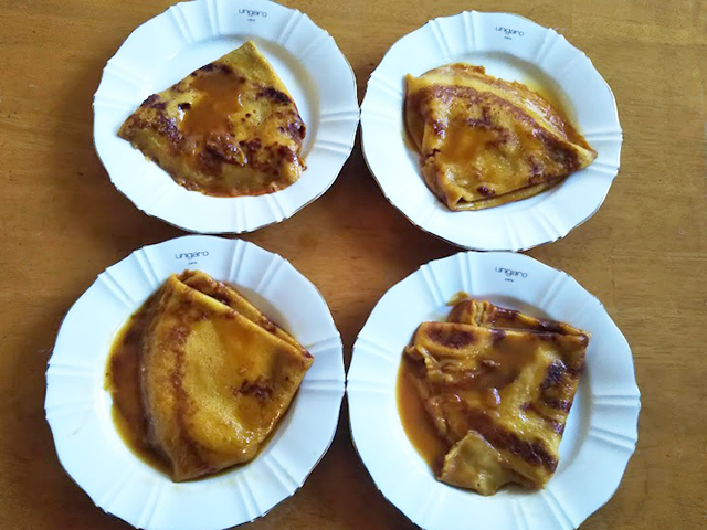 「デザートにはオレンジジュースをバターで煮詰めたソースで煮込んだクレープを用意しています」