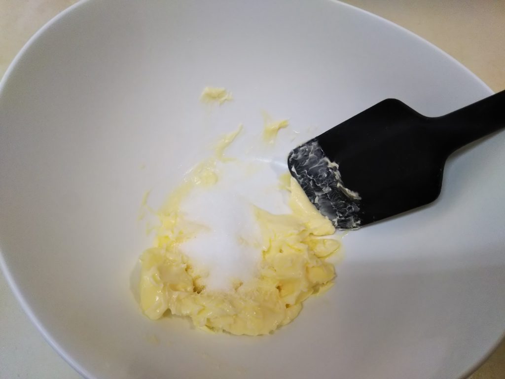 3. バターに砂糖を3回に分けて加え、その都度よく混ぜる