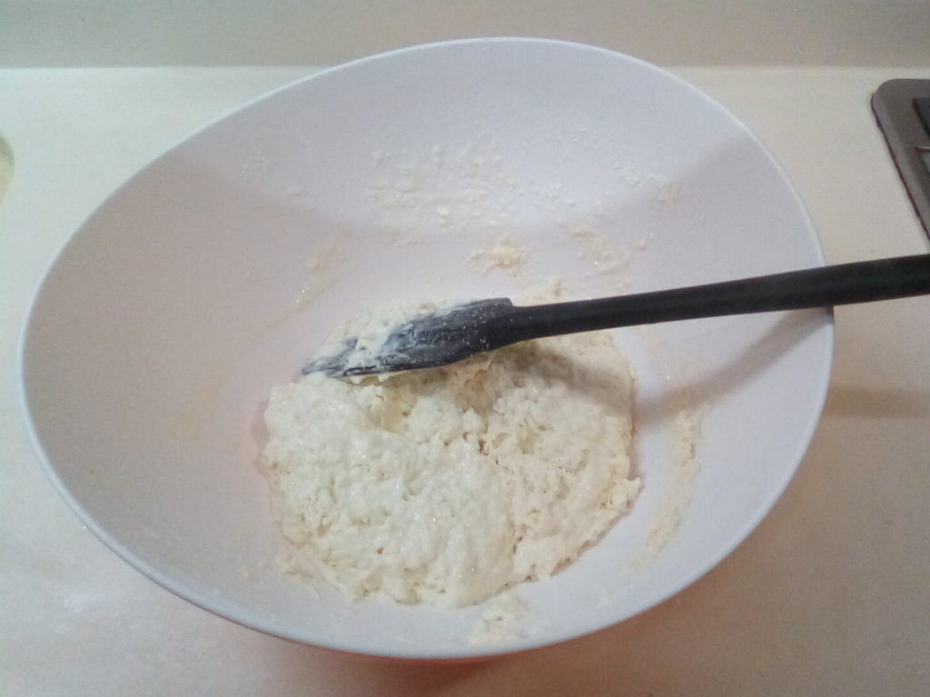 3. ゴムベラで一まとめにする。ベタベタして混ざりきってない感じでいいみたいです