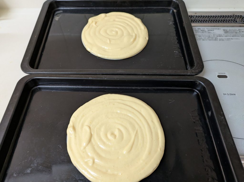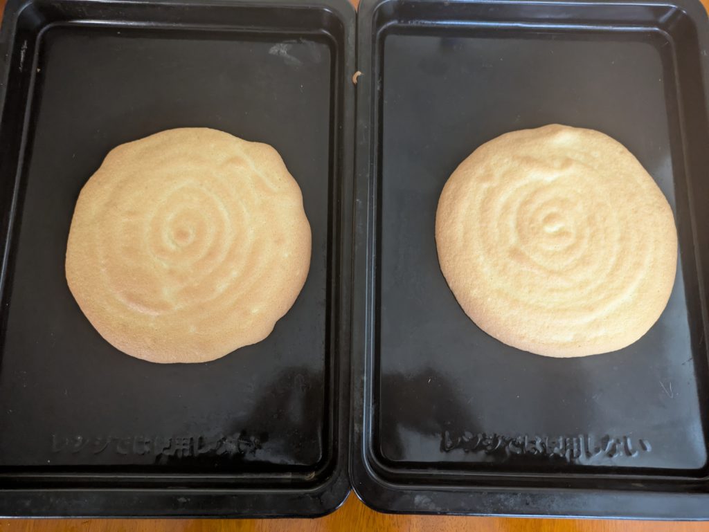 いつもの分量で18㎝のビスキュイが2枚焼けました。