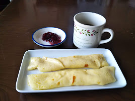 スウェーデンのパンケーキです、というよりクレープに近いですね。スウェーデン風は生地に砂糖をあまり入れずにジャムなどをつけてたべます食べます。本来中力粉で作るようですが、薄力粉と強力粉を半々で作りました。