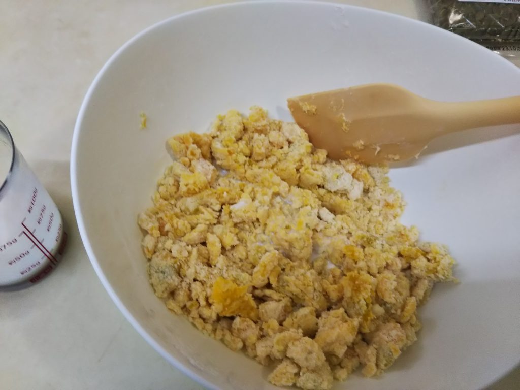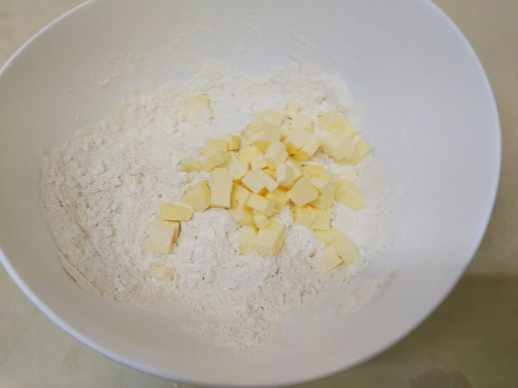 3. バターを加えて指で擦り混ぜ、粉チーズの状態にする。