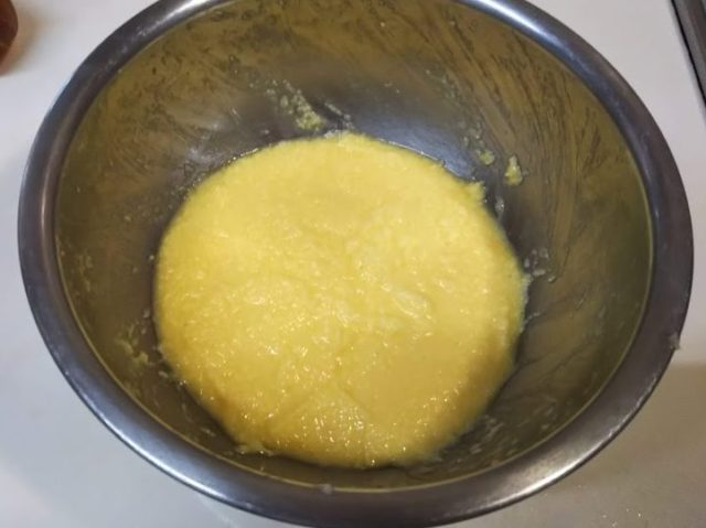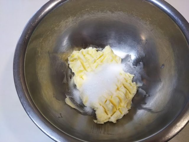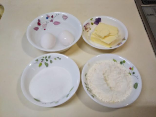 我が家のパウンド型は180㎝×8㎝の日本サイズなので、150gで作るのはちょっと無理、すべて100gで作りました。改めて読み返してみると、分量だけでなくレモンもバニラエッセンスも入れてませんね。これで再現レシピと言えるかどうか?ですが…ま、いいか。