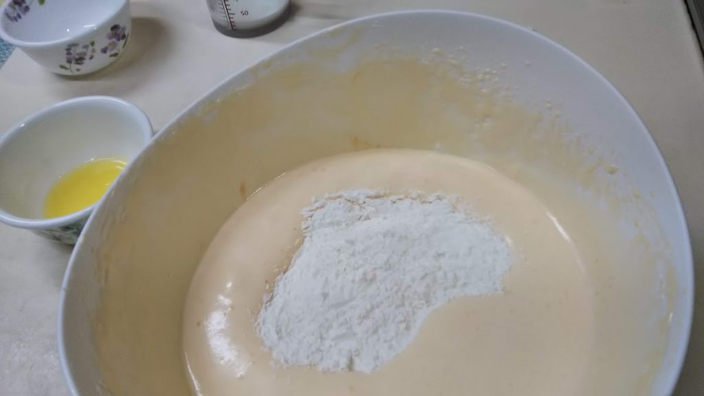 5. 牛乳とバターを溶かしたものを加えてよく混ぜ合わせる