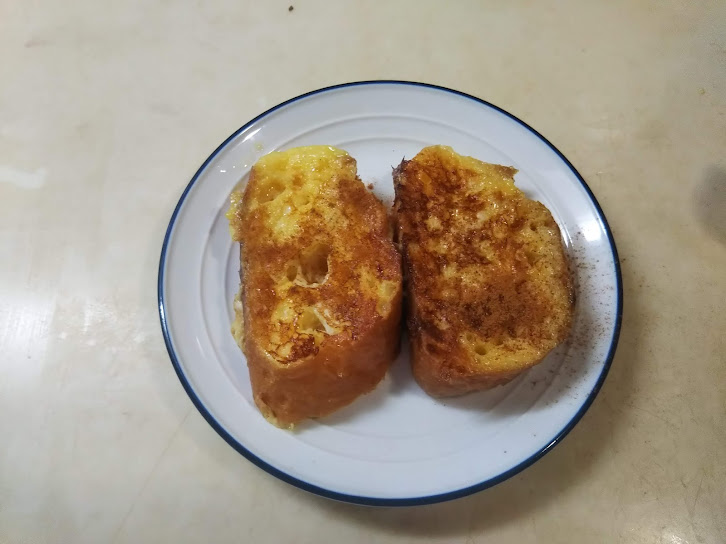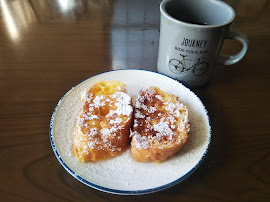 トリハというスペインのフレンチトーストです。仕上げにシナモン、ハチミツ、粉砂糖をかけるとってもあま~いデザートです。