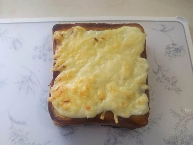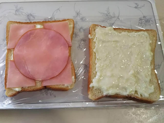 お恥ずかしながら、私は長年食パンの上にハムとチーズを載せて焼いたものをクロックムッシュと言うのだと勘違いしておりました。本物のクロックムッシュはベシャメルソースとハムを挟んで、上にベシャメルソースとシュレッドチーズを載せて焼くものだそうです。ただ、内側に塗るベシャメルソースの中にチーズも混ぜるものや、サンドしないでハムの上にベシャメルソースとチーズを載せて焼くものなどいろんなヴァリエーションがあるようです。私は王道が好きなので、王道と思われるレシピに挑戦してみました。