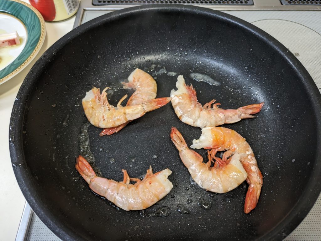4. 海老は殻のまま炒める