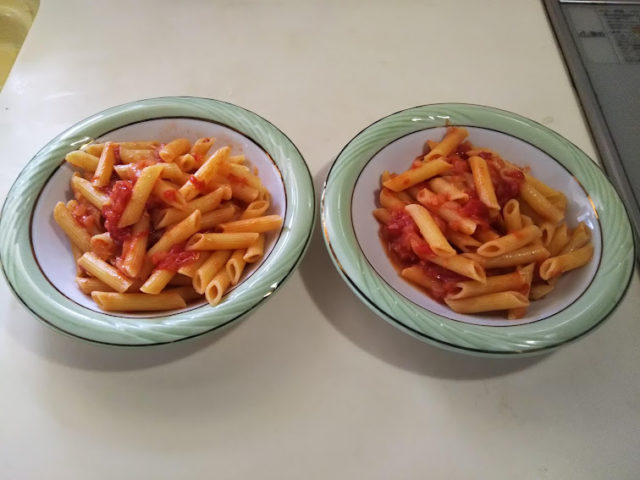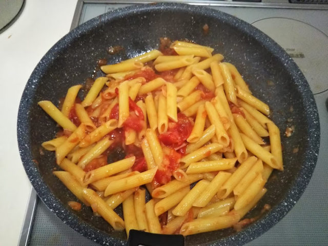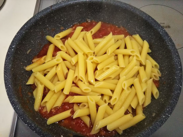 ペンネはペンのような形をしているからそういう名前がついたのだそうです。ペンネといえばアラビアータ、トマトソースにニンニクと唐辛子を加えたピリ辛のシンプルなソースが特徴です。