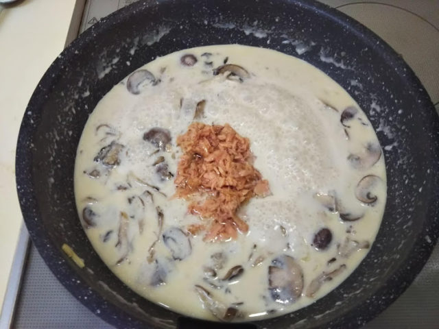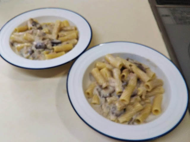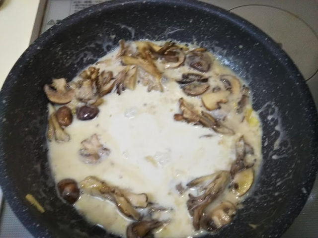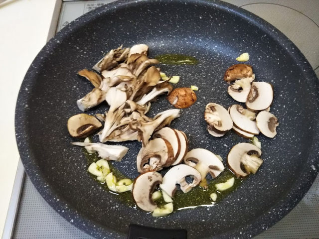 ボスカイオーラは直訳すると『木こり風』となり、キノコを使ったパスタを指します。スパゲッティでも作りますがショートパスタにもなかなか合います。特にホワイトソースをベースにしたボスカイオーラとリガトーニの相性は最高です。今回はホワイトソースベースで舞茸とブラウンマッシュルームを入れて作りましたが、キノコであれば種類は問わず、ソースもトマトでもオイルでも構わないようです。