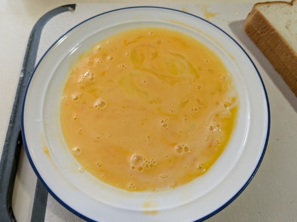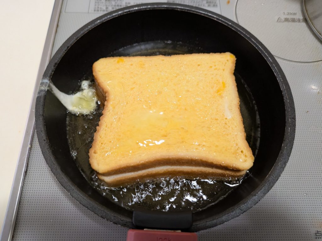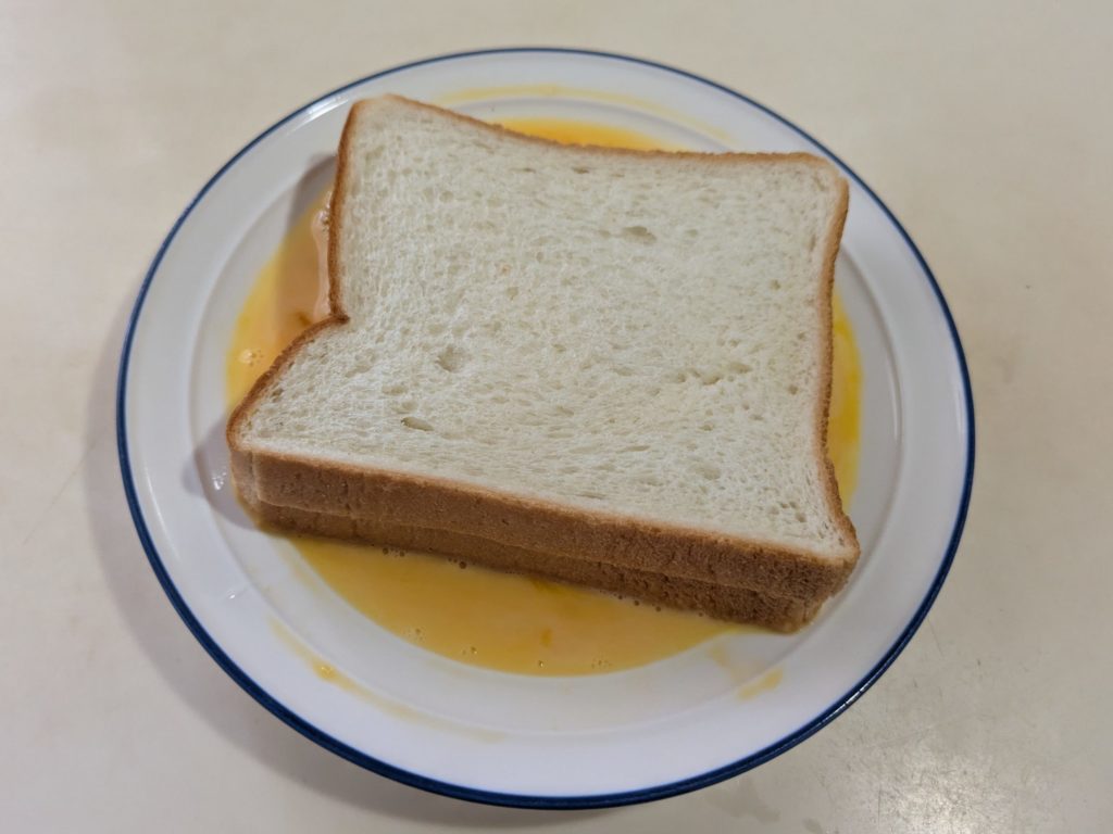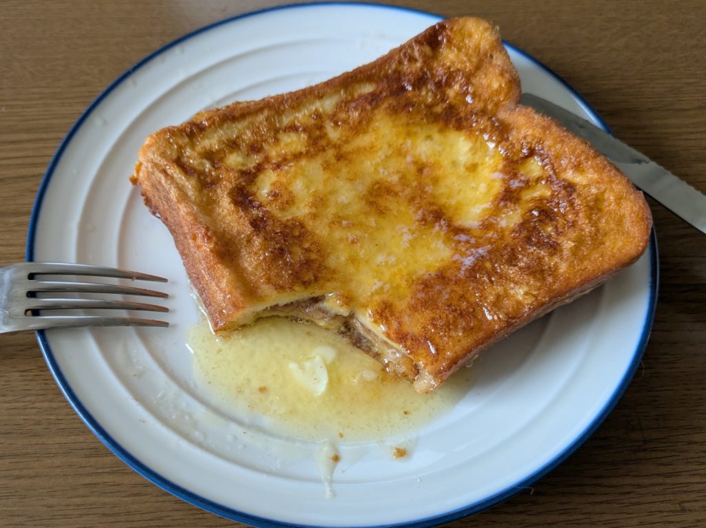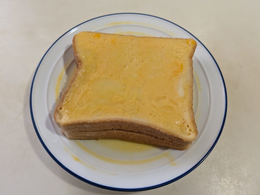 香港のフレンチトースト、西多士(サイトーシー)を作ってみました。朝食メニューとした一般的ですが、かなりボリュームがあるので昼食にも向いています。ピーナツバターの代わりにジャムやカスタードクリームを挟むものもあります。上にかけるのはホットケーキと同様バターとメープルシロップが一般的ですが、コンデンスミルクなどをかけるケースもあうようです。今回はメープルシロップがなかったのでハチミツをかけました。