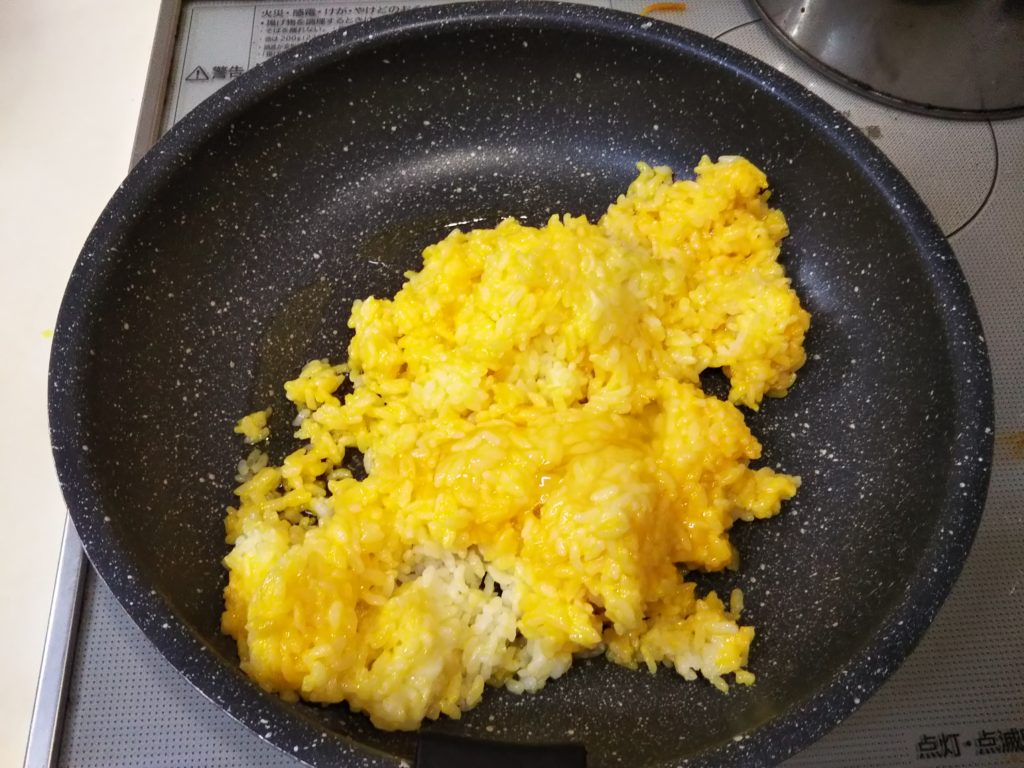 3. フライパンに油を熱し、2.のごはんを炒める