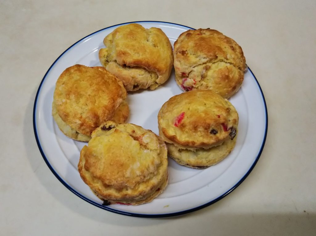 ご存じ何も入れないシンプルなスコーンです。いろいろ食べ比べて、これが一番飽きずに美味しい気がします。上手な人は側面に「オオカミの口」と言われる裂け目が出来るのですが、私はまだまだ修行が足りなくてなかなかオオカミの口に至りません。それでも美味しく食べられますよ。