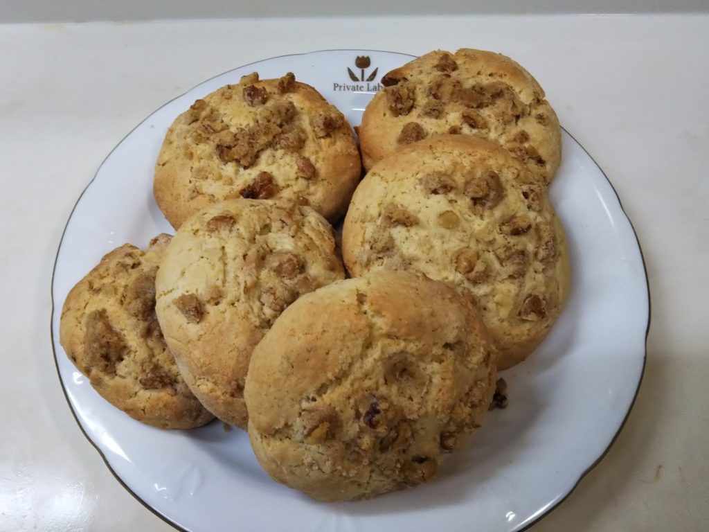 カナダと言えばメープル…ってくらい楓やメープルシロップは代名詞のようになっていますね。このスコーンはメープルシロップをたっぷり入れて胡桃を飾りました。メープルの味わいと胡桃とクランチの口当たりが楽しいおやつです。