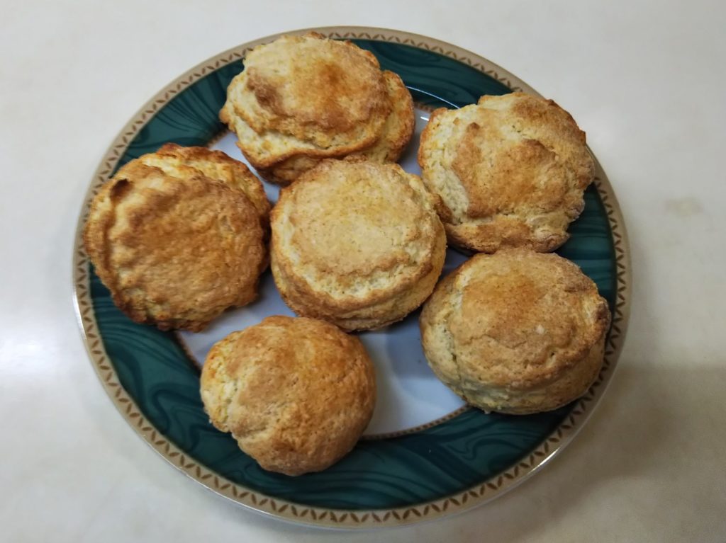カナダにも英国風の円筒形のスコーンやアメリカ風の三角形のスコーンはあるのですが、カナダのスコーンを調べていくうち大きくて平たいスコーンが目に入りました。これが主流かどうかはわかりませんが、1つの特徴として面白いなと思います。